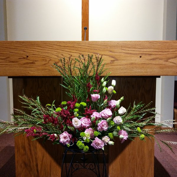 소재 : 리시안셔스(핑크), 맨드라미, 국화(Button Green), Celosia wheat.