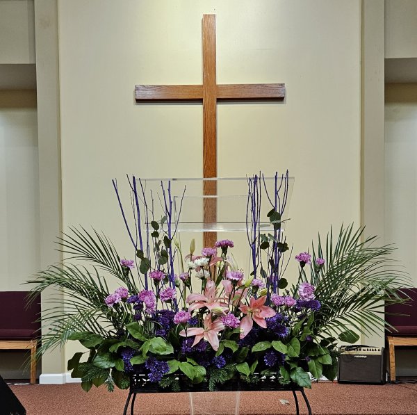 소재 : Pom (Nov white Estrella), Robeline Leaf, Carnation (Nov. Lavender Jubilee), Blue Pom.
