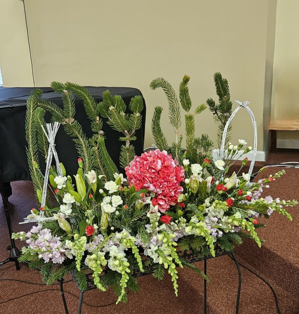 가운데 "붉은 수국"은 새해에 떠오르는 태양 그리고 변치않는 푸른 소나무들...